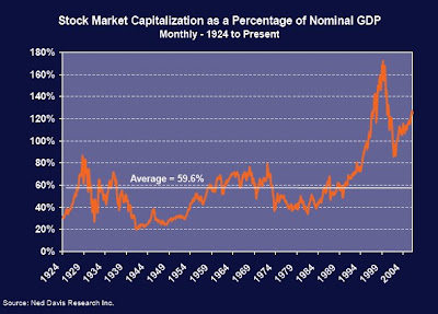 It is the ratio of the sum of ALL assets, at market value, to GDP that has to be considered,not only shares. Most of world wealth today is based on IOU, funded or unfunded (pun intended) . On this basis, we have waaaay to go.